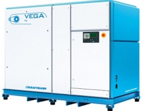 Kraftmann Vega 45-13 (Германия) – это промышленный винтовой масляный компрессор, который может быть использован для круглосуточного производства сжатого воздуха. Компрессор дает возможность получать до 8070 нормальных литров воздуха в минуту при максимальном давлении до 8 атмосфер. Регулировка давления возможна в интервале от 5 до 13 бар с точностью 0.1 атмосферы. Энергоэффективная винтовая пара с запатентованными профилями роторов дает возможность производить сжатый воздух, затрачивая меньше мощности. Электродвигатель компрессора Vega 45-13 имеет достаточный запас по мощности, который гарантирует стабильную и надежную работу винтового компрессора. Все основные узлы и компоненты компрессора Vega 45-13 расположены таким образом, чтобы потоки воздуха от вентилятора эффективно охлаждали нагревающиеся элементы компрессора, поддерживая тем самым оптимальный температурный режим всей компрессорной станции. Также грамотная компоновка компонентов обеспечивает легкий и быстрый доступ к узлам компрессора для диагностики или проведения технического обслуживания.